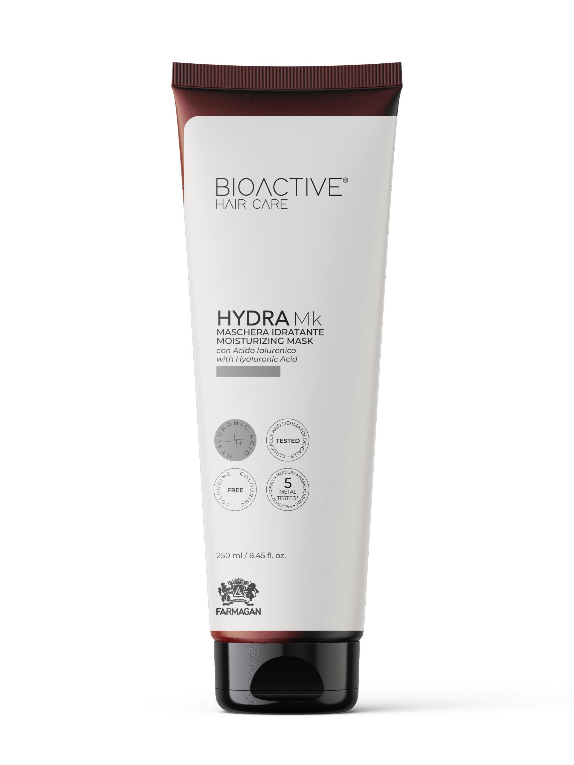 BIOACTIVE HAIR CARE HYDRA Mk Moisturizing Mask – deeply hydrating and nourishing mask for restoring dry and dehydrated hair. Enriched with hydrolyzed keratin, restores structure, provides softness and elasticity. Moisturizing ingredients like glycerin and panthenol maintain optimal moisture balance, leaving hair soft, shiny, and manageable.